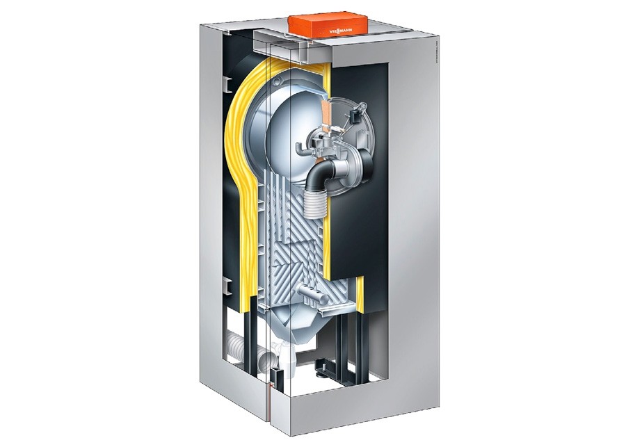 Напольные модели обычно конвекционные (традиционные). Горелка нагревает теплообменник, а продукты сгорания сразу же выводятся через дымоход. Настенные же котлы могут быть как конвекционными, так и конденсационными , в которых тепло конденсата, образующегося от нагретых газов и продуктов сгорания дополнительно аккумулируется обраткой. Таким образом, часть тепла не попросту «вылетает в дымоход». Однако недостатком является дополнительная необходимость отвода из котла конденсата.
