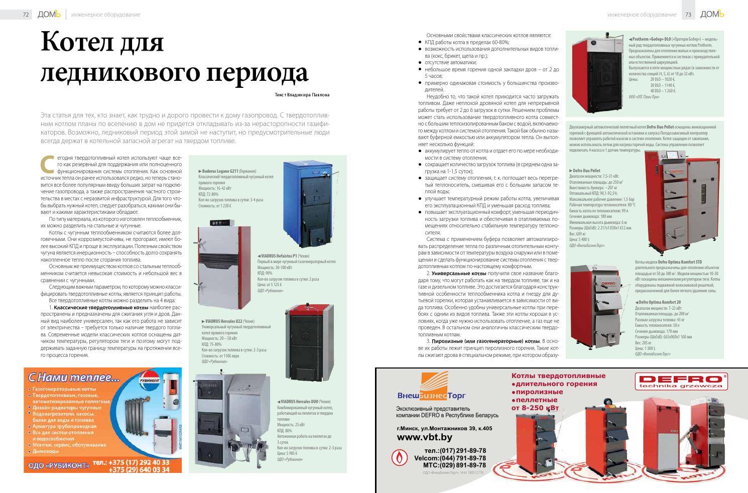 Конструкция твердотопливного котла Перед выбором подходящей модели котла нужно подробно изучить ее технические характеристики. Каждая модель имеет свое обозначение. Например, КВО 12 ТПЭ: число обозначает мощность, буквы – прибор с электрическим ТЭНом, функционирующий на твердом топливе. Тепловая производительность приборов измеряется в киловаттах и варьируется в пределах 12-20 кВт, КПД равен 70%, стандартное давление не может быть больше 0,1 МПа. При помощи приборов обоих серий можно отапливать помещения площадью от 120 до 200 м2. Максимальное значение температуры должно составлять не менее 95 градусов, номинальное колебаться в пределах 60-80 градусов.