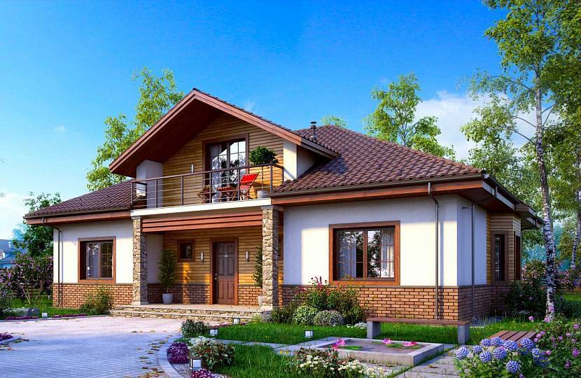 Красивый дом с балконом на мансардеИсточник hozsektor.ru