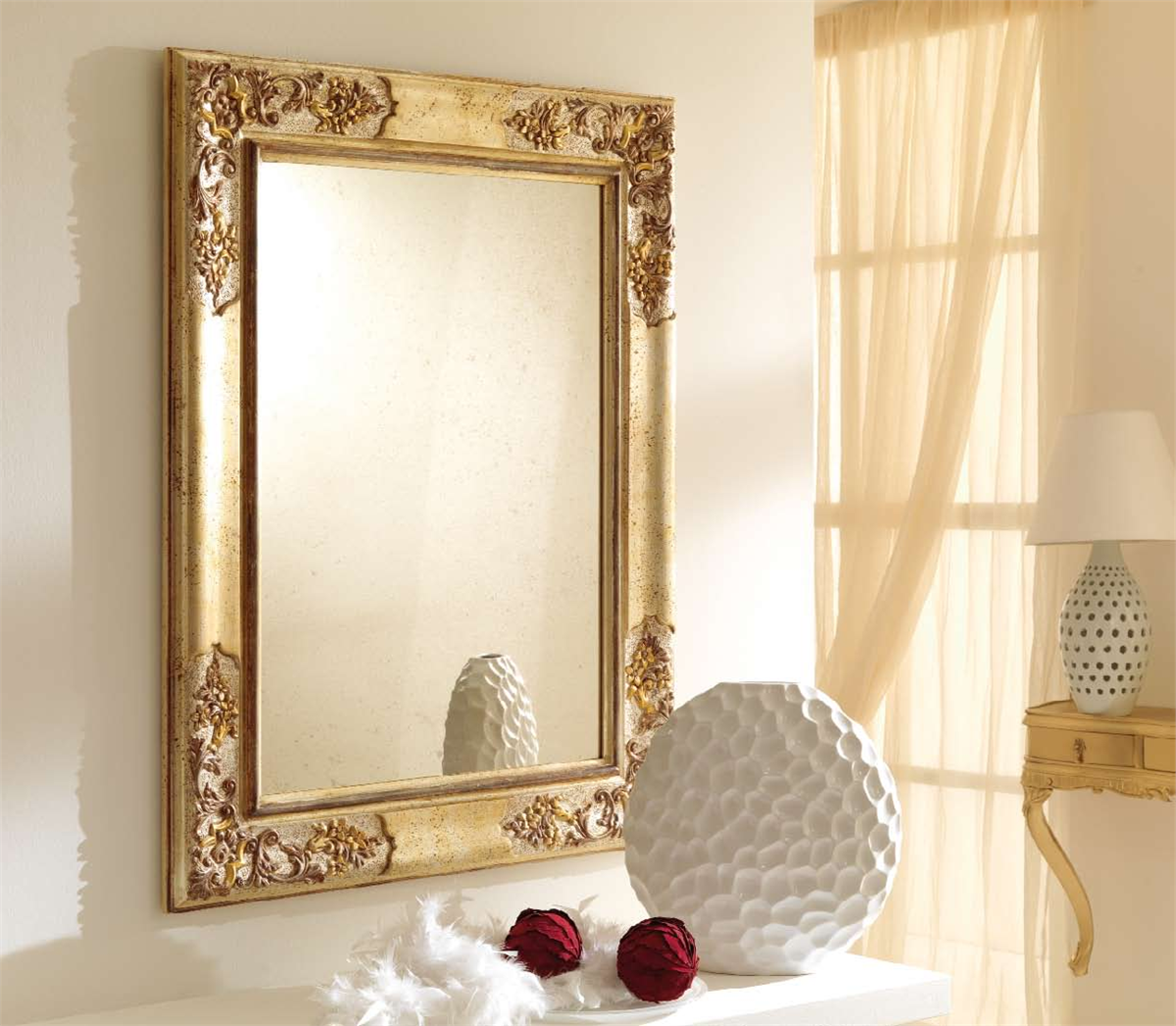 Основная особенность стилистики заключается в художественной импровизации. К примеру, подставьте свечи в старинные канделябры и расположите их около зеркала в золотом обрамлении. В результате вы создадите в помещении эффектную и завораживающую композицию.