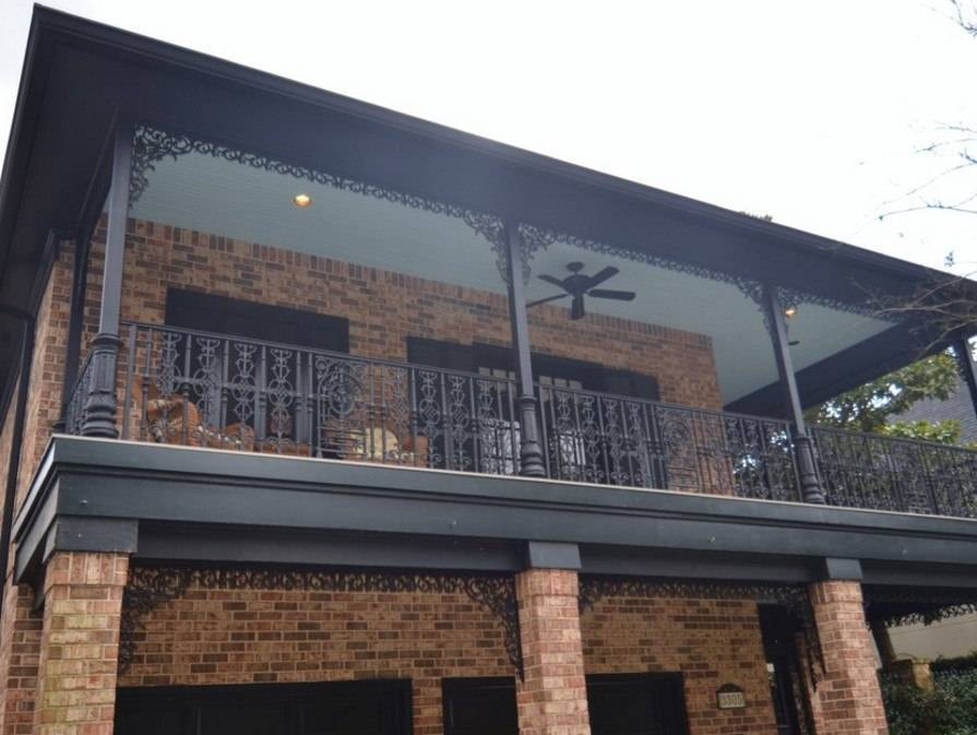 - Балкон, выполненный в стиле готики, наполнен объемным орнаментом и ровным геометрическим узором, что придает особую грациозность и солидность.