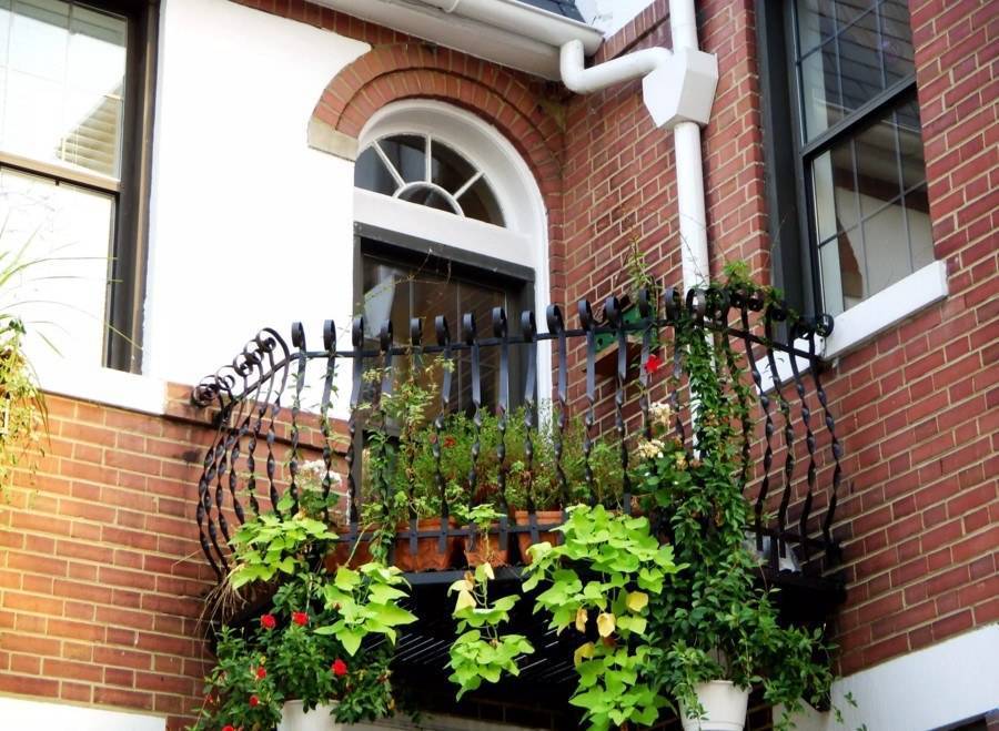 У любителей цветов особой популярностью пользуются кованые французские балконы. Интересно, что в переводе этот термин звучит как «окно-дверь».