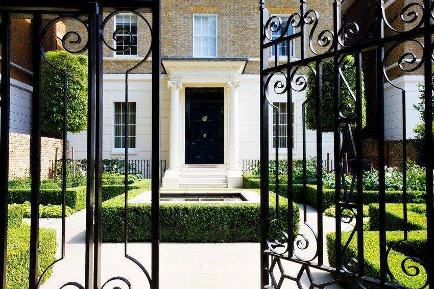 Перед большим жилым домом забор с металлическими стойками выглядит неестественно. Если столбы оставить без облицовки, ограждение и весь двор проиграют в эстетическом виде. Ажурные красивые пролеты и простые опоры между ними – это как картина без багета. Дорогой кованый забор достоин иметь внушительный фундамент и столбы.
