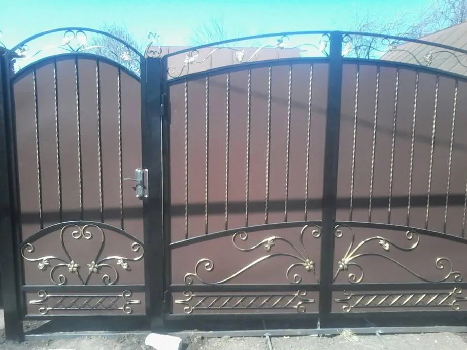 Ворота со встроенной калиткой, выкованные из металла