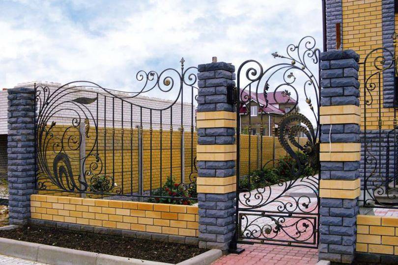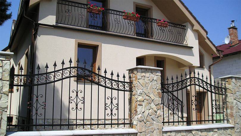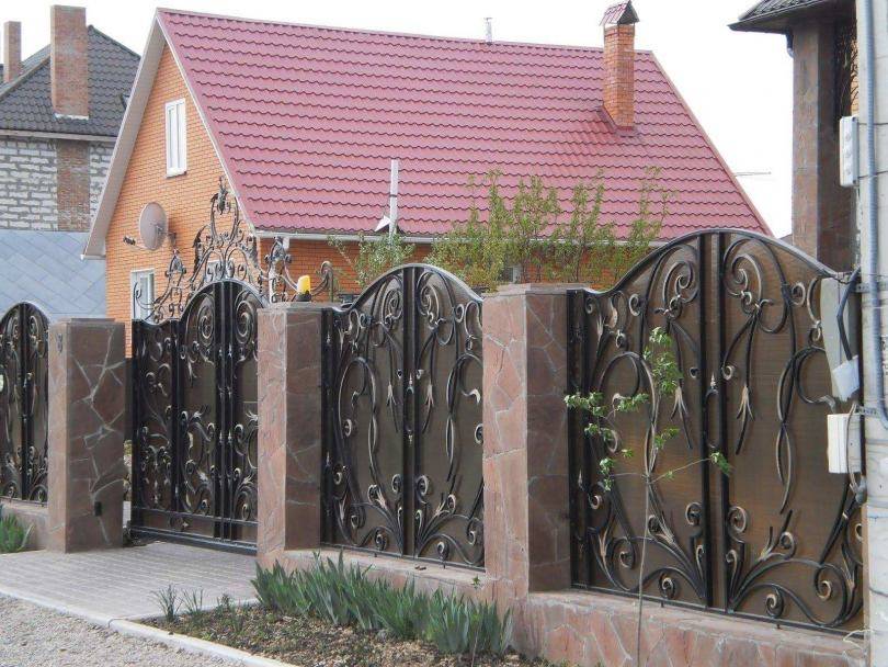 То есть, основным материалом будет профлист, а ковка будет придавать большую декоративность. Также такой подход поможет сэкономить строительный бюджет: профнастил стоит заметно дешевле железных узоров.