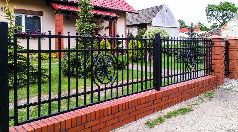 - Тип конструкции. Кованые заборы могут быть декоративными, защитными или комбинированными. От этого зависит и внешний вид ограждения, и его конечная стоимость. Кроме того, кованые секции, ворота и калитки прекрасно вписываются в ограждения из других материалов (камня, кирпича и так далее).