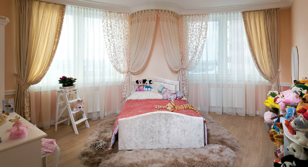Считаются самым универсальным решением, за счет которого можно значительно преобразить обстановку детской, подчеркнуть ее стиль и наделить пространство некой воздушностью. Единственным минусом подобных изделий, является их непрактичность и частая уборка, из-за быстрого накопления пыли.