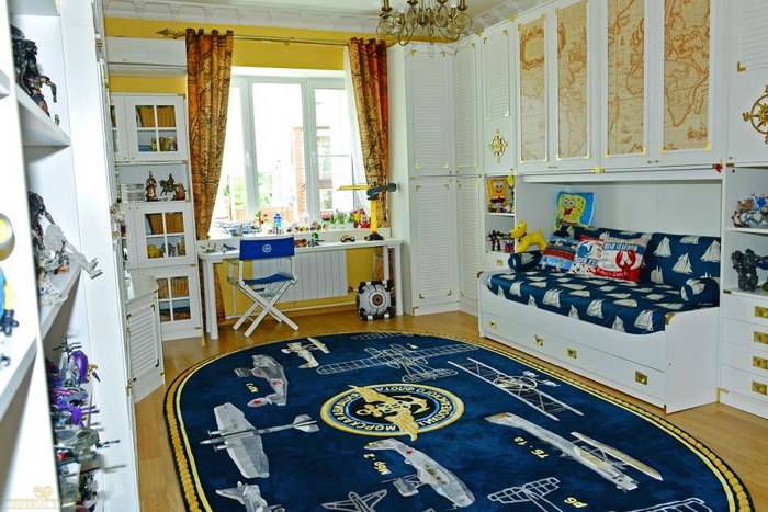 Не составит труда создать интересный и неповторимый дизайн, подобрав детские ковры в комнату для мальчиков. Нужно просто учитывать желание ребенка. Если ваш ребенок видит себя моряком, то создайте в комнате дизайн с использованием морской темы.