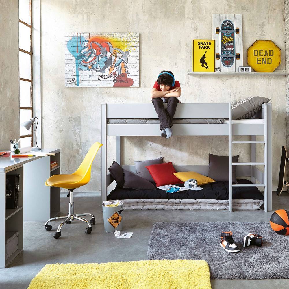 Серые коврики с цветными акцентами очень популярны для детских в этом сезоне, они хорошо вписываются в скандинавский стиль оформления