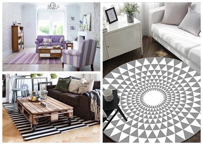 Можно облагородить интерьер несколькими коврами, дабы подчеркнуть некоторые функциональные зоны помещения