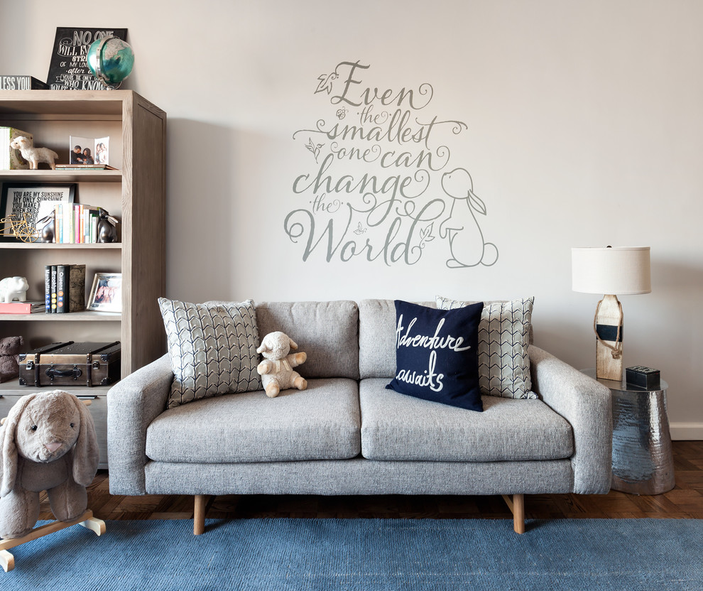 Серый коврик в детской можно сочетать с другим цветным ковриком