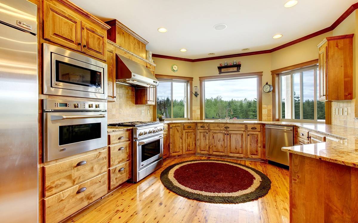 Если на полу лежат дерево или ламинат, необходимо проявлять особую осторожность в процессе приготовления пищи (впрочем, и во время трапезы — тоже). Попадёт много воды — покрытие может пострадать