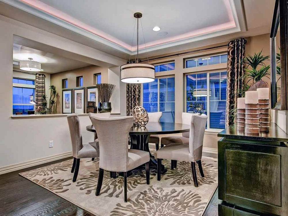 Круглый стол и круглый ковер станут украшением обеденной зоны