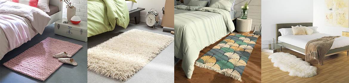 Чаще всего укладывают ковер на пол: под кровать или возле неё. Таким образом делают спальную зону более комфортной.