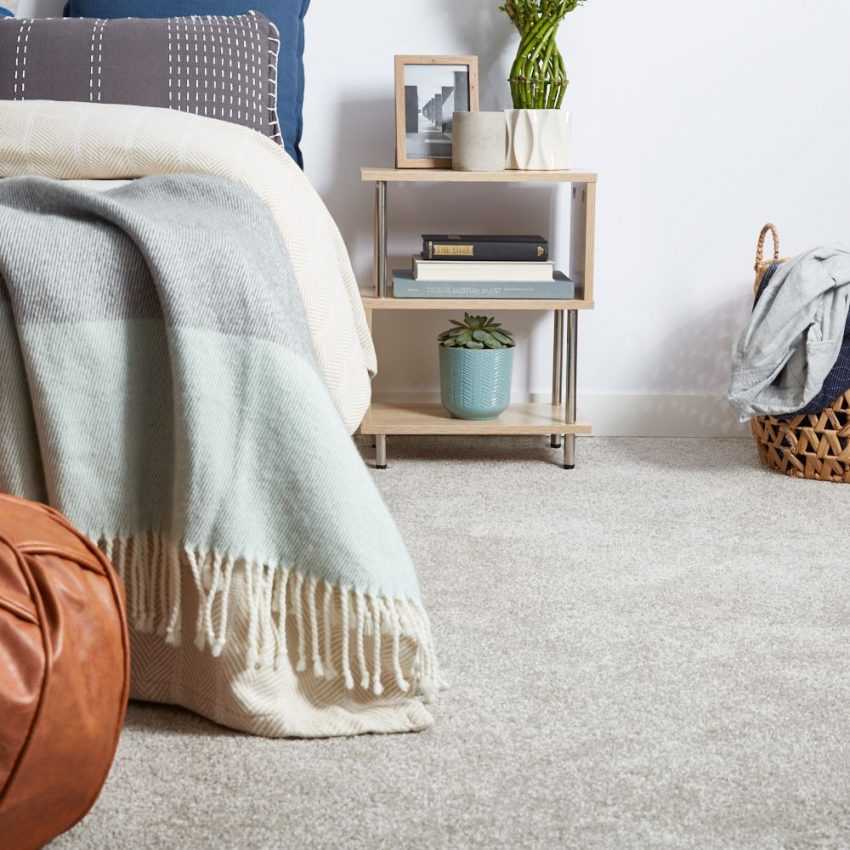 По мнению большинства дизайнеров для интерьера спальни лучше всего использовать ковровые покрытия светлых оттенков, потому что светлые цвета успокаивают, умиротворяют, настраивая на отдых и, к тому же позволяют зрительно увеличить помещение.