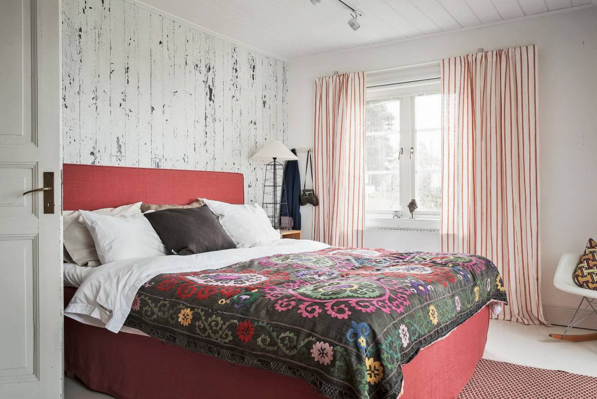 Скандинавский стиль — ковер на стене тонко ломает прохладную цветовую палитру, приятно оживляет декор. Тем не менее, стоит умело подходить к цветам, чтобы они не были слишком яркими, это может нарушить гармонию интерьера.