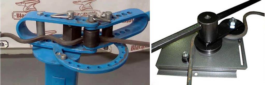 Рычажный станок допускает установку ролика для прижима на высоту толщины полосы и закраиной шире железнодорожного колеса. Такой способ требует кропотливости: рычаг необходимо двигать понемногу, в противном случае получится испорченный внутренний край. К сожалению, это единственный метод изготовления таких завитков в производстве своими руками.
