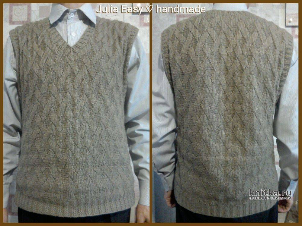 Мужская безрукавка из трикотажной пряжи спицами: описание работы