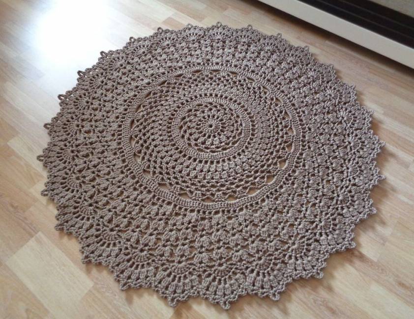 Простой плотный ковер в форме круга отлично сохранит тепло. Изящные ажурные круглые изделия выполняют скорее эстетическую функцию. Они слишком тонки, чтобы согревать.