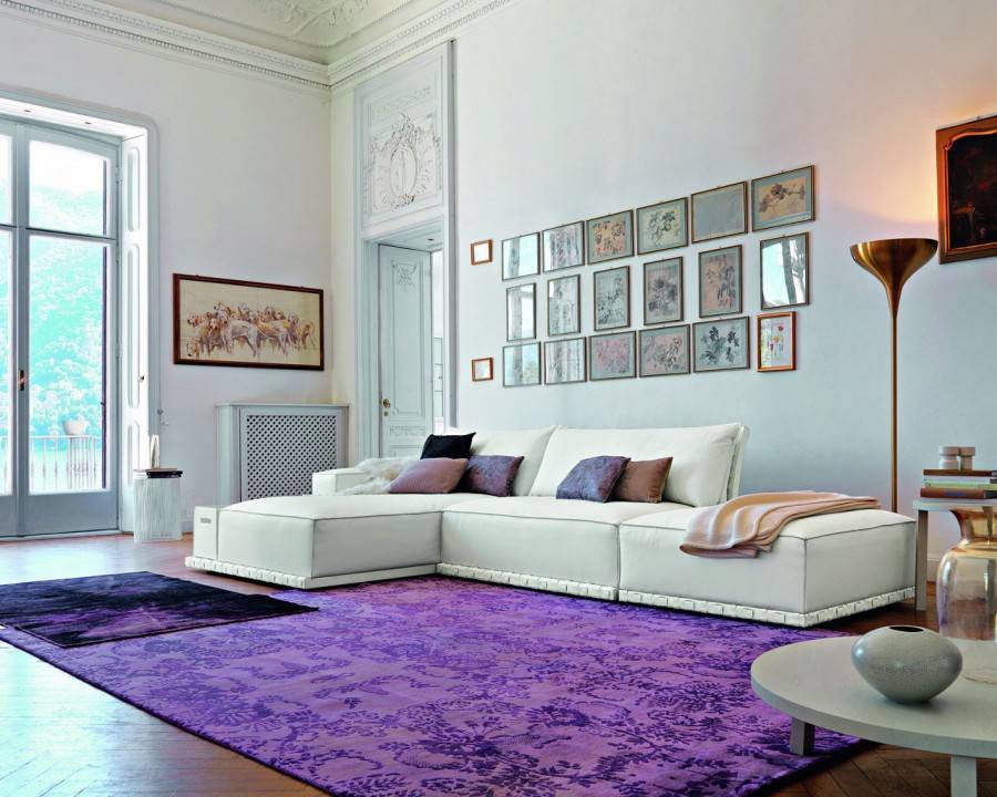 Также можно расставить акценты с помощью композиционной игры ковра и предметов мебели или предметов декора.