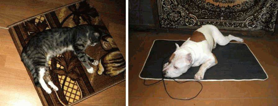 Для животных. Домашние питомцы могут поцарапать или погрызть коврик, поэтому нужно выбирать товары с повышенной прочностью. Животное следует сначала отучить портить провода. Максимальная температура нагрева не должна превышать 35°C.