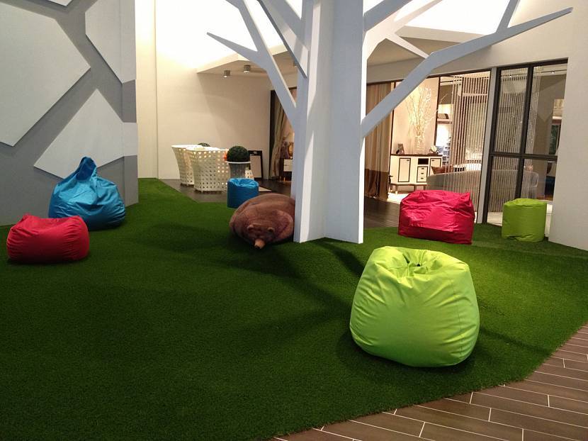 Кроме того, ковровое покрытие в виде искусственной травы применяется для украшения и создания локальных акцентов. Можно декорировать этим материалом отдельные предметы мебели или использовать его иным образом.