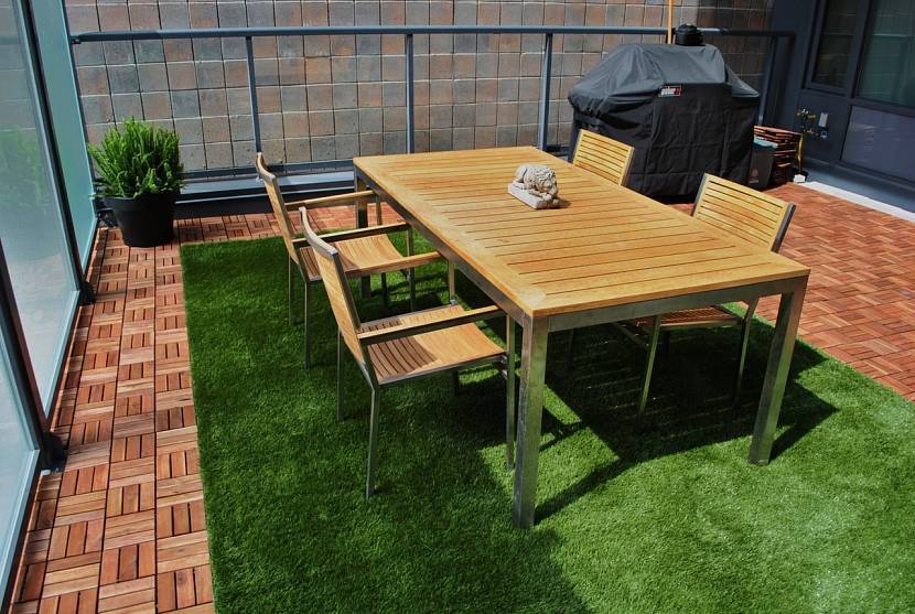 Газон на балконе помогает отказаться от ремонта полаИсточник pinimg.com