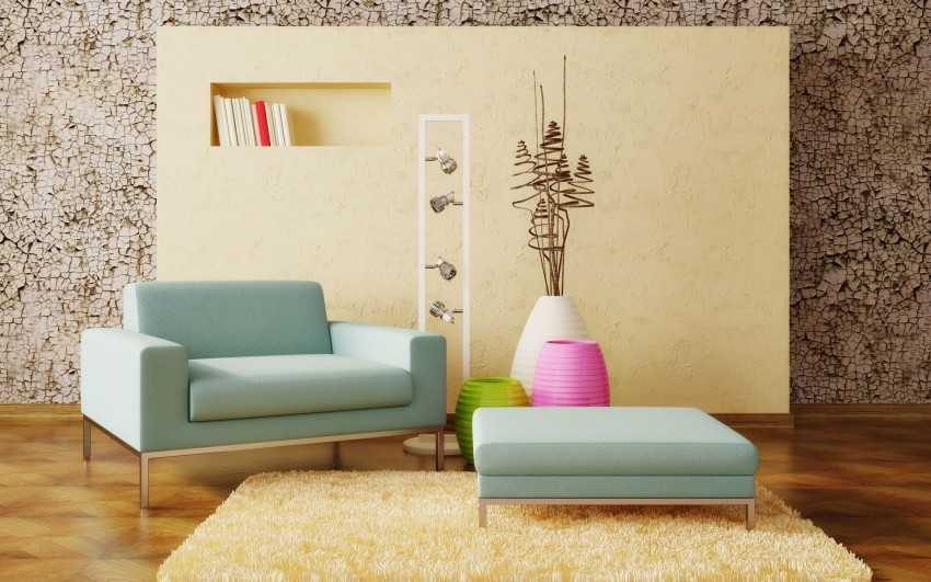 - Неконтраст. Цветовая гамма паласа максимально приближена к интерьеру — может быть в тон пола, мебели, стен. При этом нельзя допустить слияния — пусть что-то одно будет на пару тонов светлее или темнее другого.