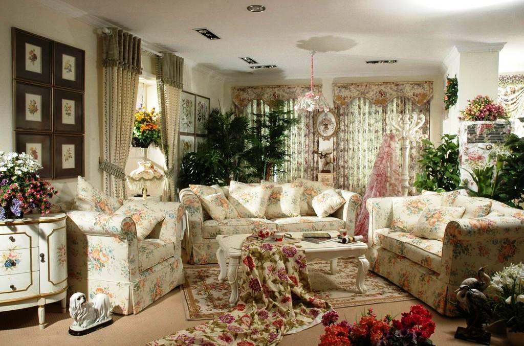 Для такого стиля изготавливают особенные велюровые ковры. Они имеют слегка потёртый узор, кажется, что он стоптался временем и проглядывается только местами. Модели не имеют ярких оттенков и сложных рисунков.