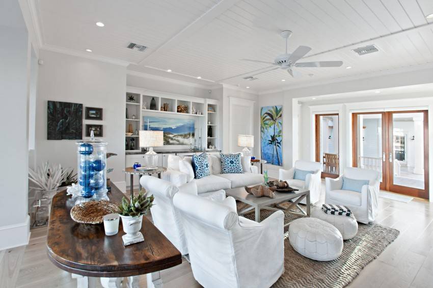 Дизайн комнаты с белым диваном