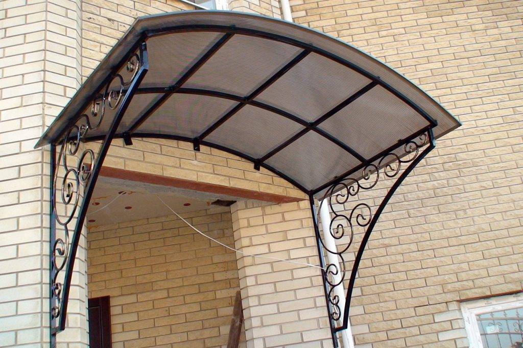 Лучшим дизайнерским решением станет козырек, каркас которого выполнен из ковки. Он будет служить достойным украшением дома. Однако такая конструкция обойдется вам в копеечку. Кованный козырек можно совмещать с такими кровельными материалами, как поликарбонат, черепица и даже пластик.