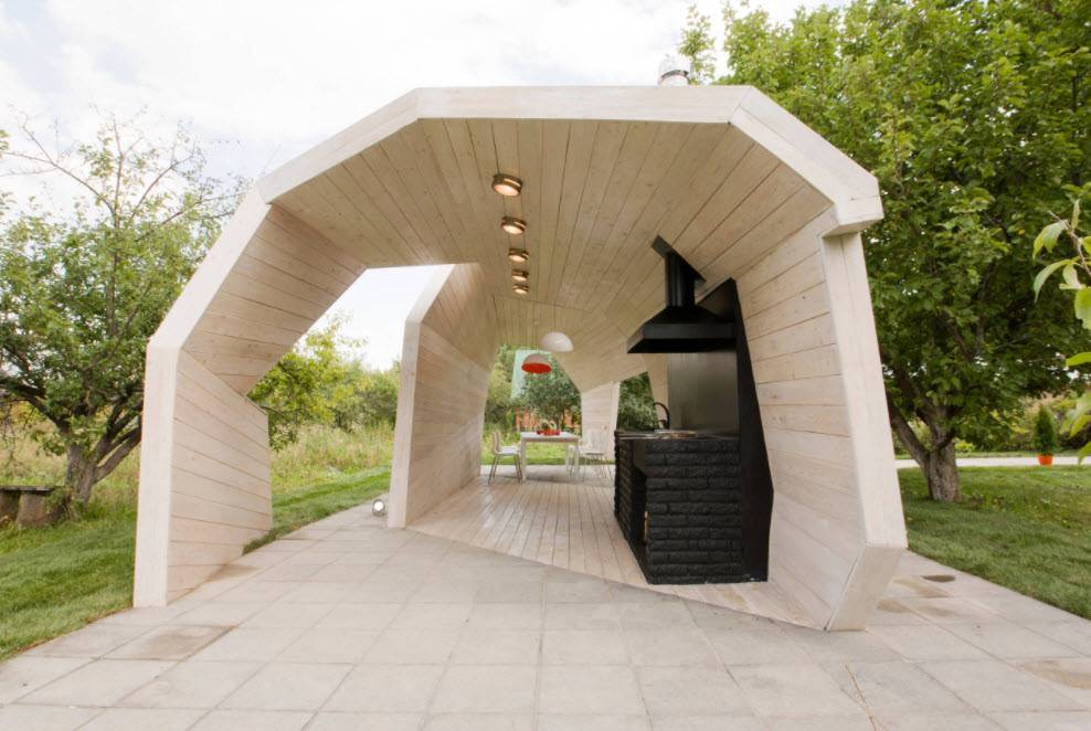Это один из самых любимых типов навеса у всех собственников домов, который может выполняться в любой удобной форме: круг, квадрат, многогранник и т.д. Такие навесы оптимально размещать в наиболее живописной зоне участка или же на небольшой возвышенности. Также беседка может быть открытого типа, в таком случае достаточно опор и самой крыши, что будет защищать от плохой погоды.