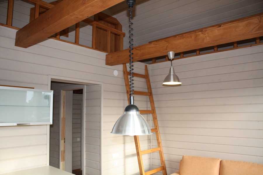 Внешняя стена на фото выше, обшитая вагонкой, выполняет и роль деревянного акцента, и несет в себе чисто утилитарную функцию дополнительной теплоизоляции спальни.