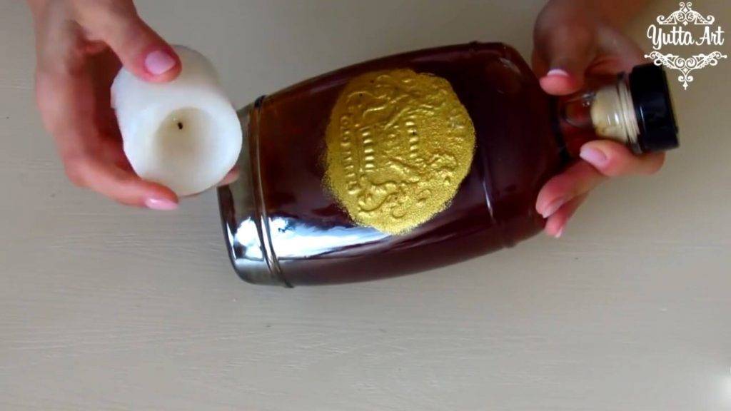 Часть бутылки, где нет картинки, покрывает красивой краской