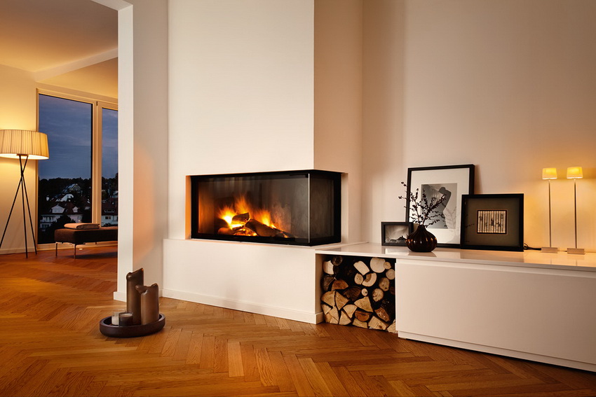 Дизайн интерьера гостиной с камином в современном стиле