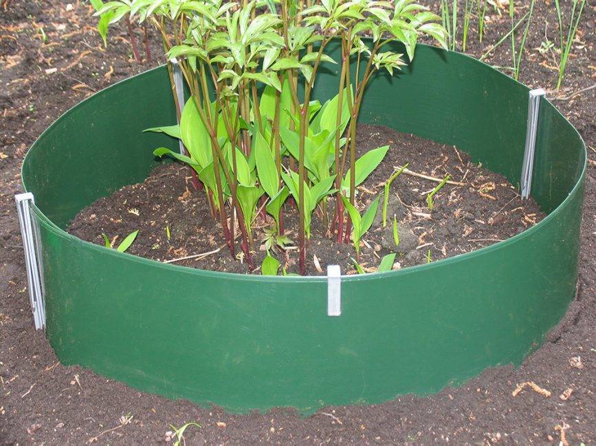 Делают бордюры из других подручных материалов: черепицы, пластиковых, стеклянных бутылок. В отделах товаров для сада и огорода продаются специальные огородные бордюры в виде пластиковых лент с колышками.