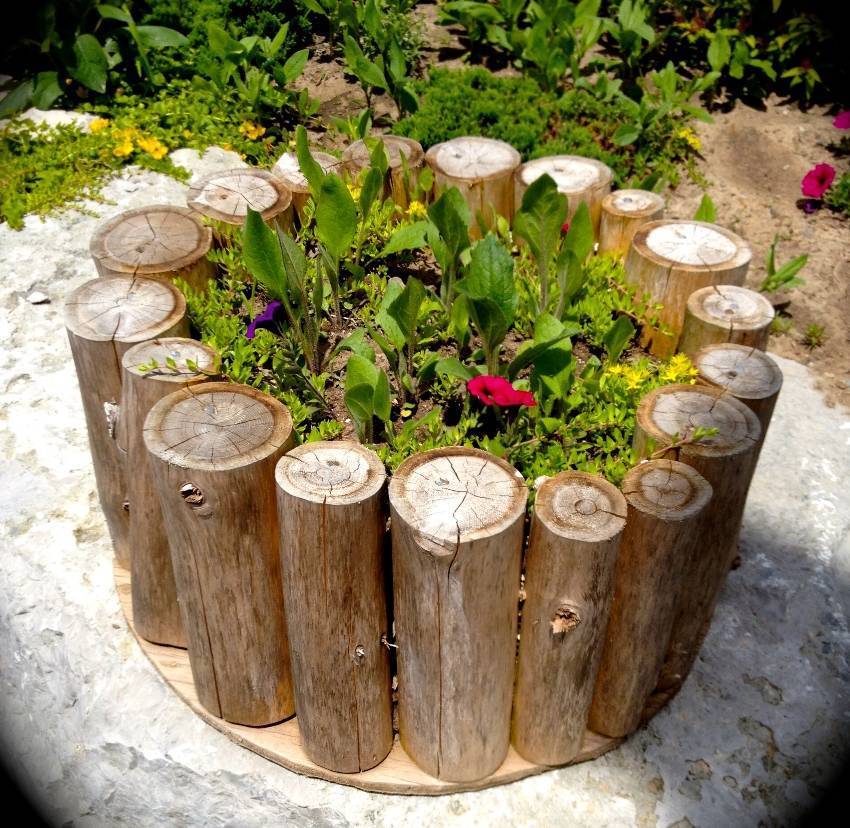 Можно сделать красивую грядку и из веток. Обычных, корявых. Главное — не забыть их обработать биозащитой, чтобы они не стали источником болезней для растений.