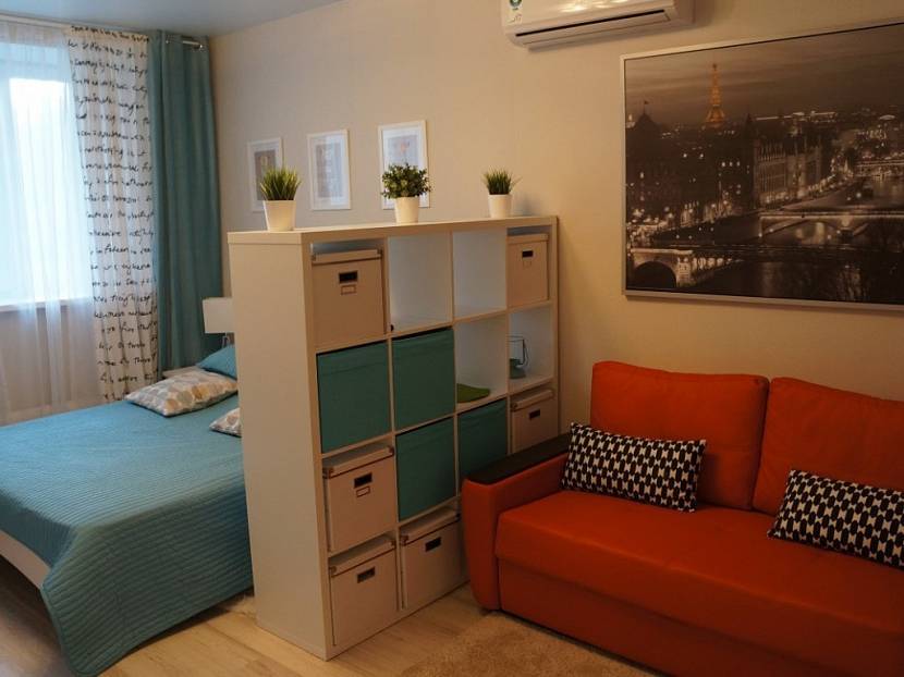 Зонирование с помощью стеллажаИсточник dekoriko.ru