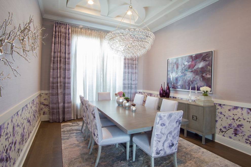 обои с фиолетовыми цветами – отличный способ наполнить интерьер чувственностью. Желательно, чтобы фиолетовые цветы на обоях были не слишком крупными, иначе они будут затемнять комнату;