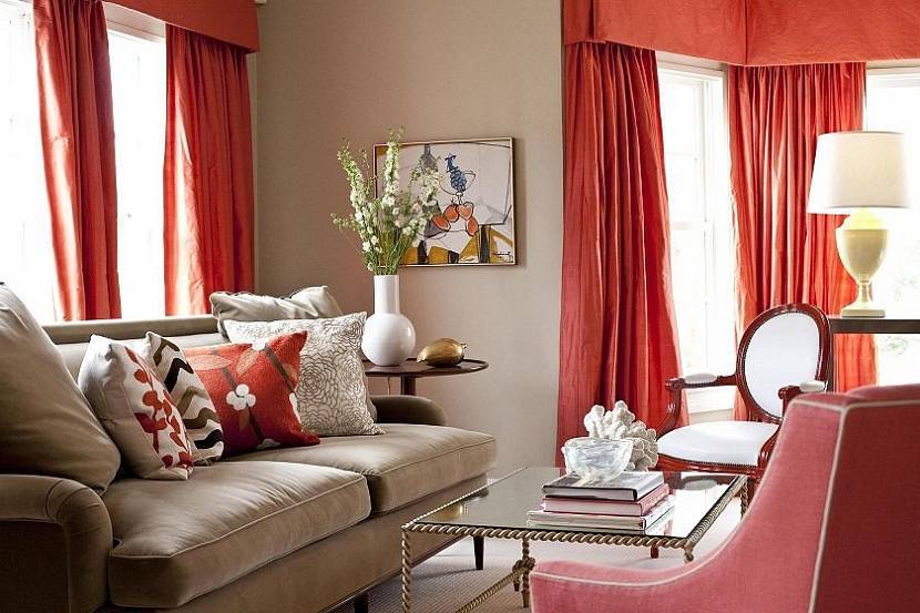 Гостиная в классическом стиле с красно-оранжевыми портьерамиИсточник mab.by