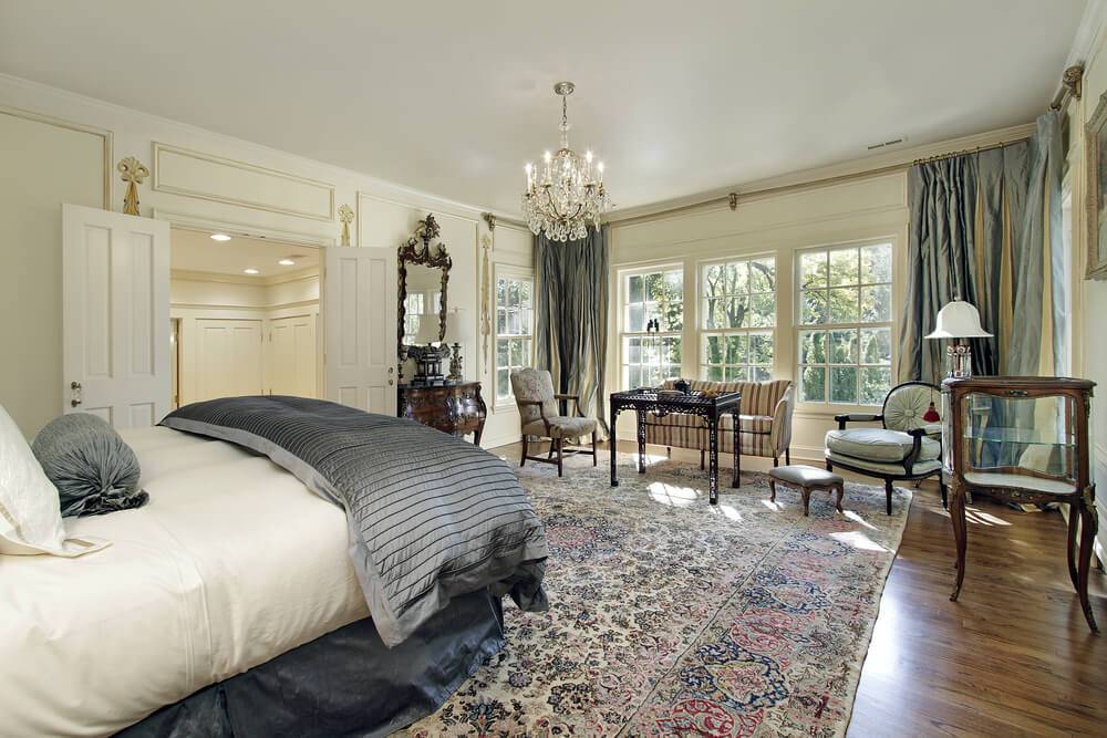 Кроме того, нужно определить размер ковра. Если вы выбираете изделие в гостиную под журнальный столик, то размеры такого атрибута должны лишь немного быть больше самого предмета мебели. В столовой же ковер должен занимать пространство не только под столом, но и под стульями. В спальне можно использовать два небольших коврика в одинаковом дизайне с двух сторон кровати, а можно и постелить один ковер, разместив его под кроватью с выступами из-под нее на метр-полтора.