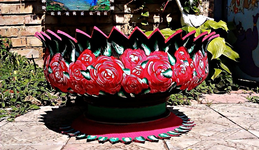Ваза из покрышки своими руками
