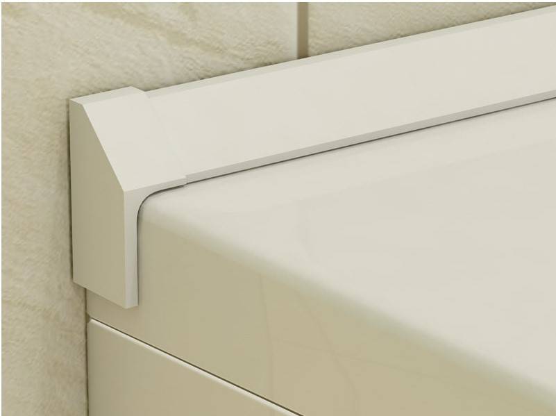 Далее – плинтус для ванны двухсоставной. По своей сути, он такой же, как пластиковый молдинг для столешниц: сначала устанавливается монтажная рейка, на которую затем крепится внешняя часть. Минусы этот багет имеет те же самые, что описаны выше, для односоставных профилей.