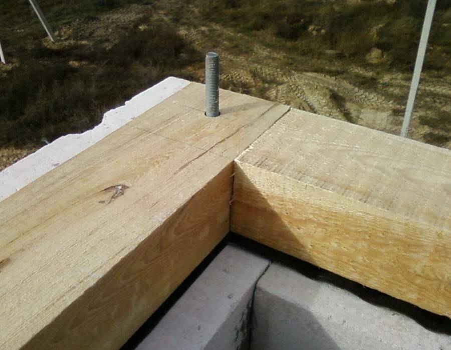 Фундамент должен быть подготовлен к будущей работе с обвязкой еще на этапе заливки. Когда он начинает затвердевать, необходимо притопить в нем анкерные болты или деревянный пробки, с помощью которых брус или доски будут прикреплены к основанию дома.