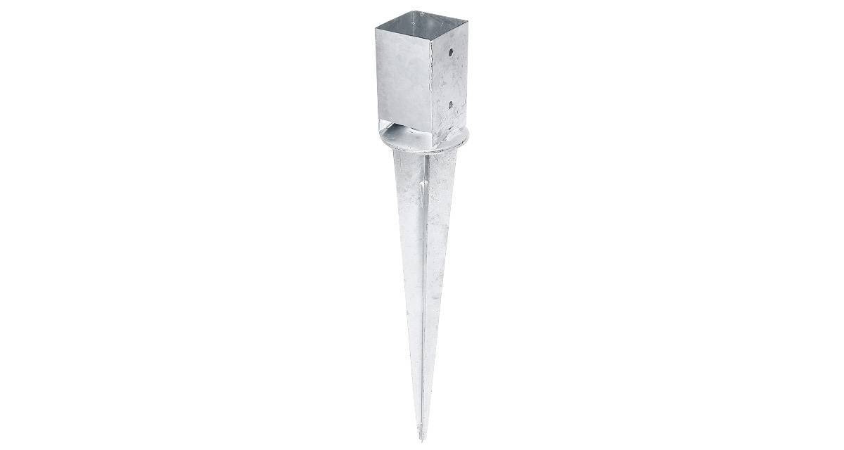 Крепеж для вертикальных стоек в землю KS используется при установке беседок, заборов и других конструкций. Этот элемент позволяет отказаться от заливного фундамента для кольев. Главной особенностью изделия является уникальная форма: верхушка выполнена в форме параллелепипеда, плавно переходящего в острый конец. Нижняя конструктивная часть уходит под землю. Заточенная стойка монтируется в верхний элемент и закрепляется шурупами.