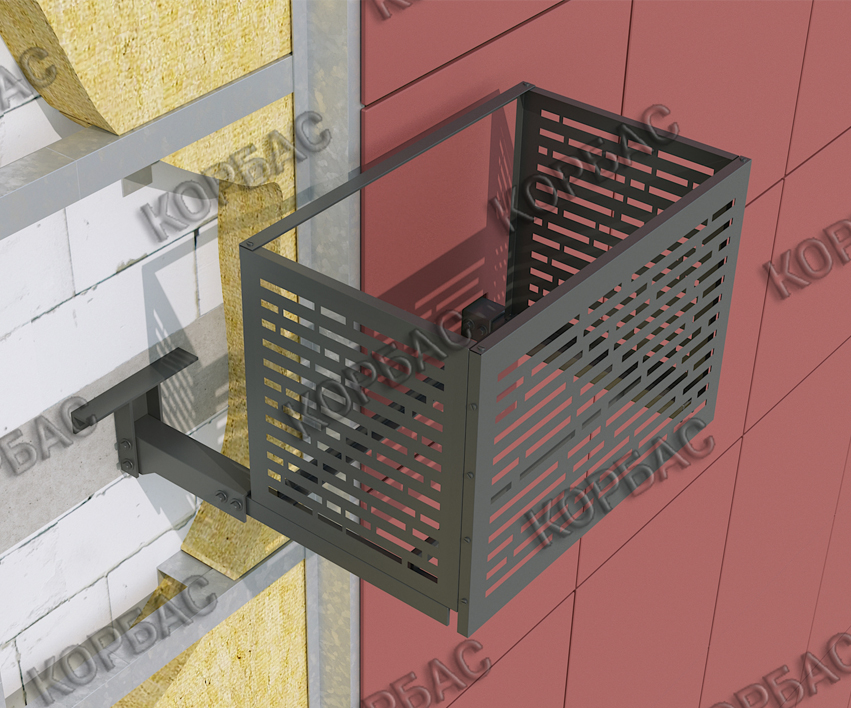 Устанавливать корзины можно на любые типы фасада: бетон, кирпич и пеноблок; вентилируемый и невентилируемый. Такие широкие возможности доступны благодаря разнообразию кронштейнов. Посмотрите видео поэтапного монтажа корзины на вентилируемом фасаде с использованием кронштейна фКПГ.