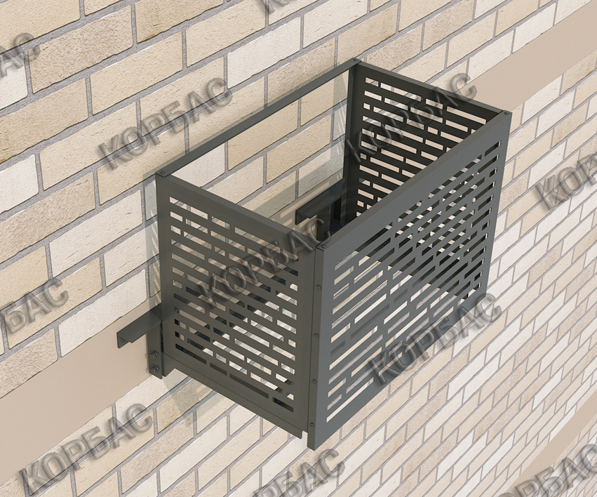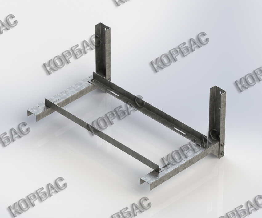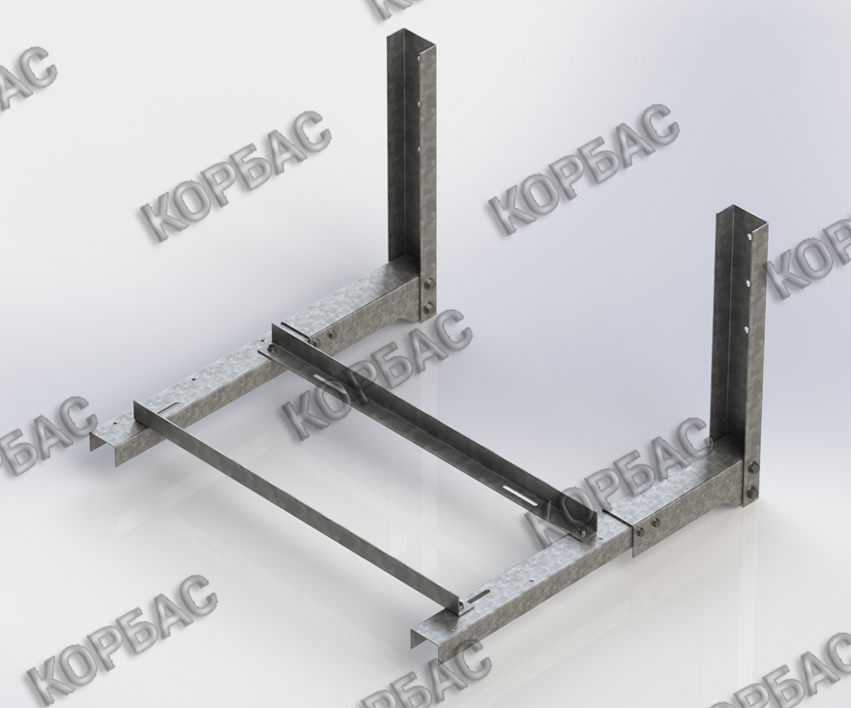 Кронштейны корзины КОРБАС являются несущими. Они выполнены с универсальными отверстиями, благодаря которым положение горизонтальных направляющих регулируется, что позволяет точно установить внешний блок кондиционера любого размера.