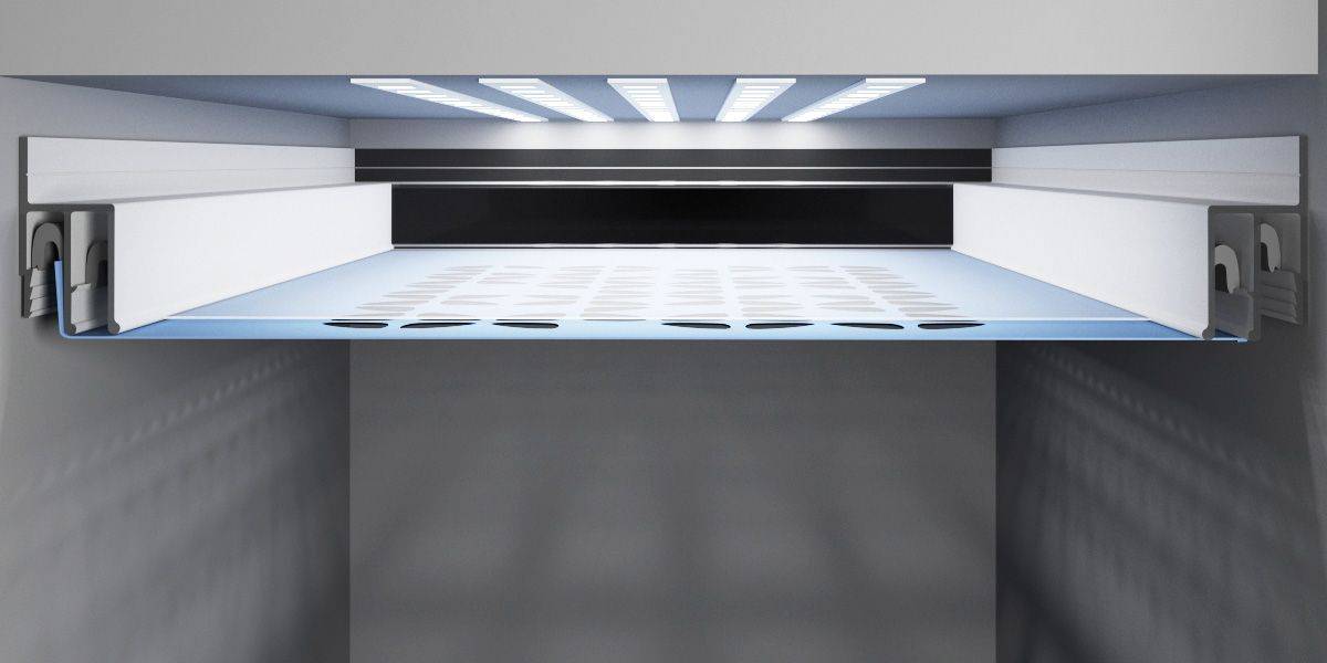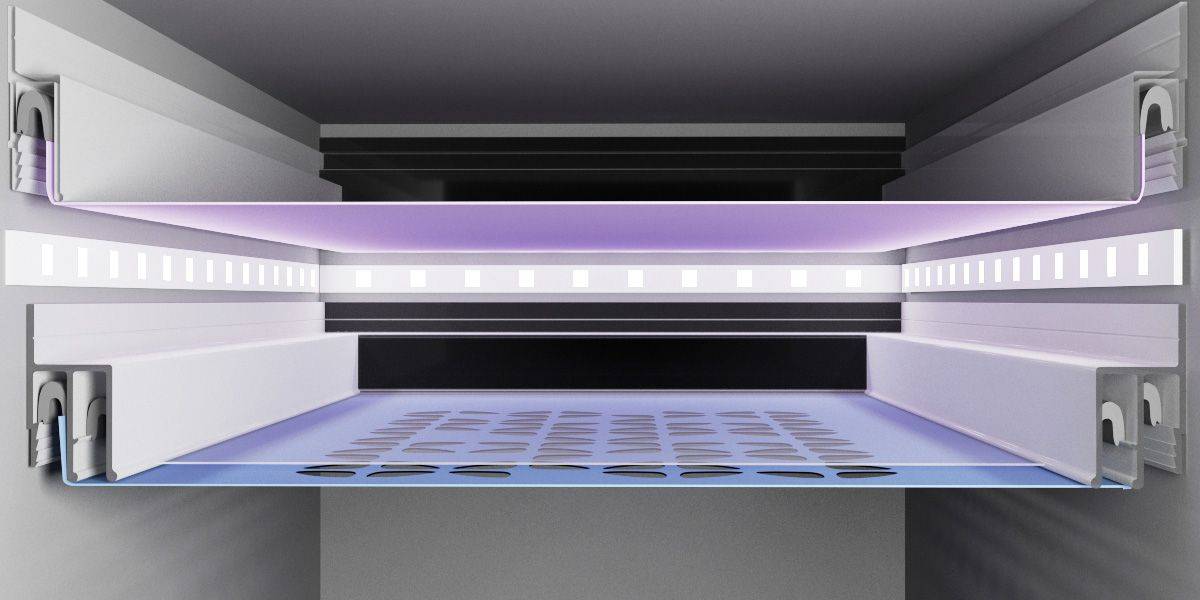 Сравнительно новой разновидностью натяжных конструкций с подсветкой являются резные 3D-потолки. Для монтажа применяются профили Apply. Конструкция багетов предусматривает крепление на заданном расстоянии фонового и перфорированного полотна.