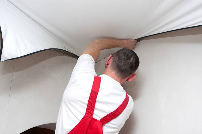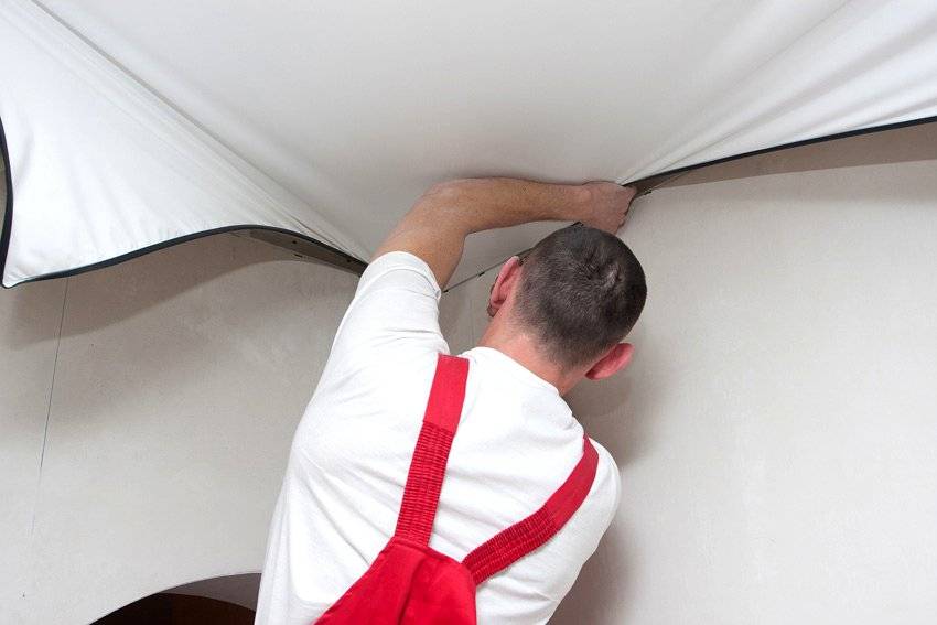 Приступить к монтажу полотна можно после высыхания краски или клея. Специалисты рекомендуют использовать пленочные потолки с гарпунным типом крепления, которые легко демонтируются при неудачной установке. Текстильных полотен с креплением такого типа не существует.