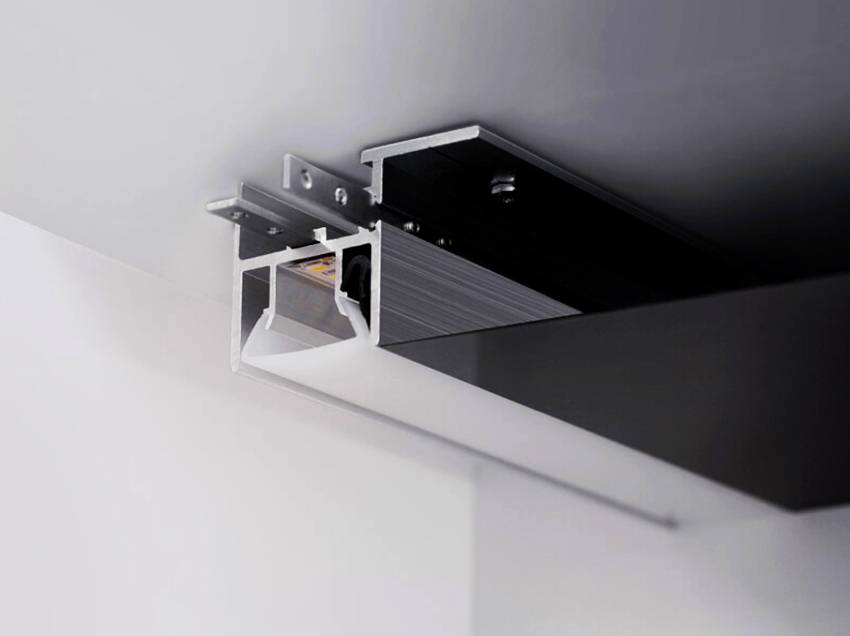 Для создания многоуровневых конструкций с подсветкой требуются специальные виды профилей, светодиодная лента, а также сопутствующая фурнитура и аксессуары. Рассмотрим каждую запчасть подробнее.